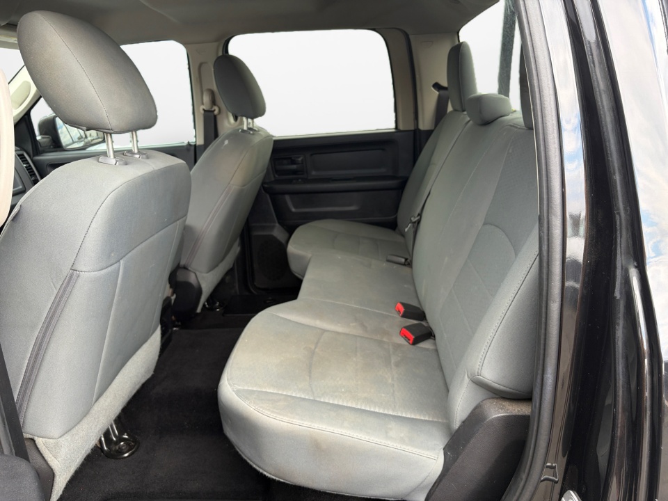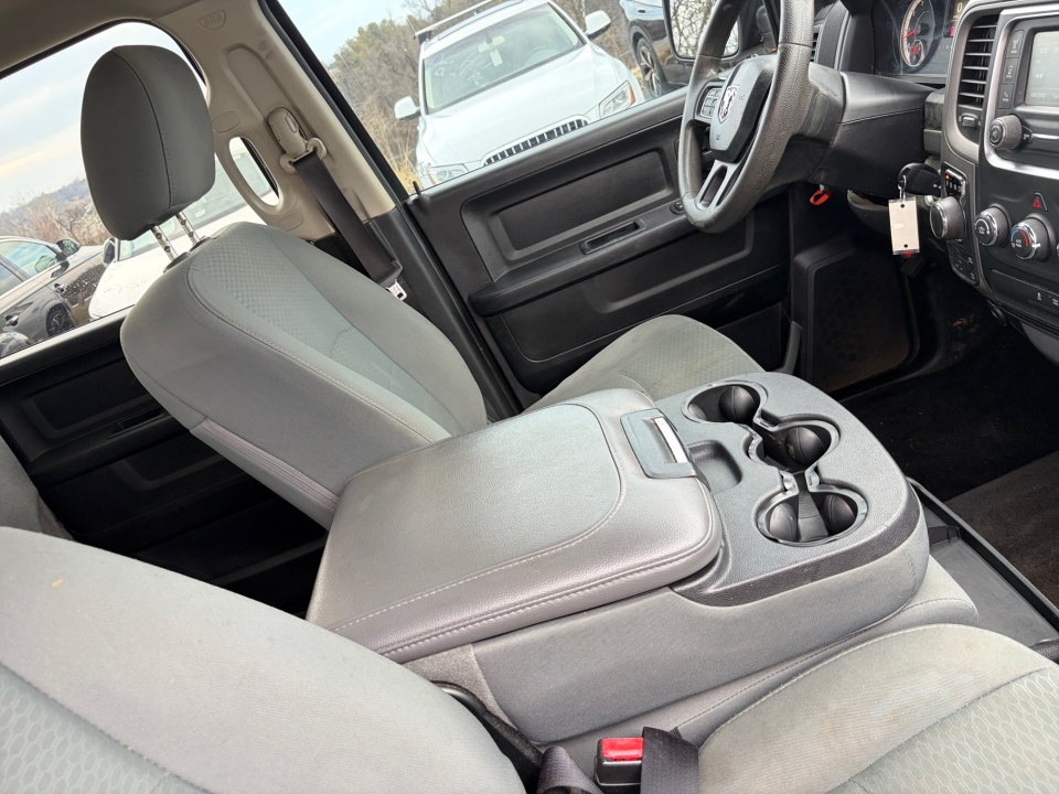 1-Yr SiriusXM Radio Service, 40/20/40 Split Bench Seat, 4x4 Flat Black Badge, 5.0" Touchscreen Display, 6 Speakers, Black Headlamp Bezels, Black Painted Honeycomb Grille, Black Ram 1500 Express Group, Black Ram Head Tailgate Badge, Charge Only Remote USB Port, Cloth 40/20/40 Bench Seat, Delete Hemi Badge, Flat Black Ram 1500 Badge, For More Info, Call 800-643-2112, Front Armrest w/3 Cupholders, GPS Antenna Input, Integrated Voice Command w/Bluetooth, Media Hub (USB, AUX), No Satellite Coverage w/AK/HI, Overhead Console, Popular Equipment Group, Radio: Uconnect 5.0, Rear Folding Seat, Rear View Mirror w/Microphone, Remote Keyless Entry w/All-Secure, Semi-Gloss Black Hub, SIRIUSXM Satellite Radio, Storage Tray, Temperature & Compass Gauge, Traction control, Wheels: 20" x 8" Semi-Gloss Black Aluminum.