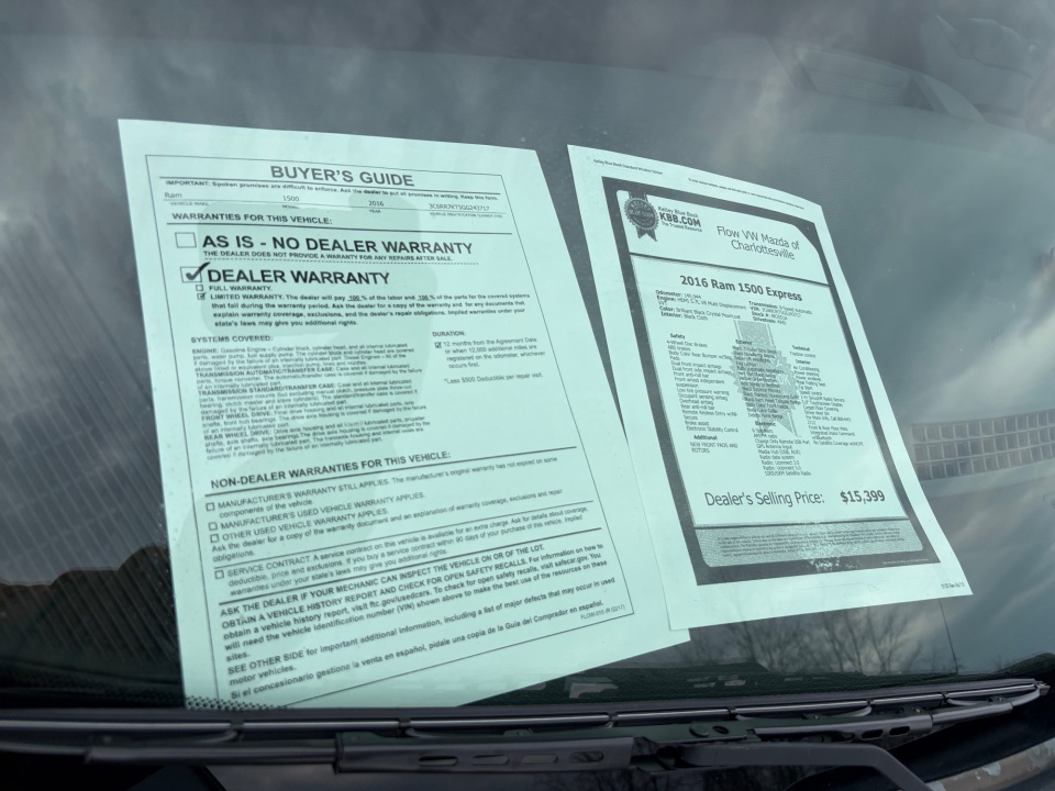 Flow VW Mazda of Charlottesville is very proud to offer this terrific-looking 2016 Ram 1500 Brilliant Black Crystal Pearlcoat Expressre.