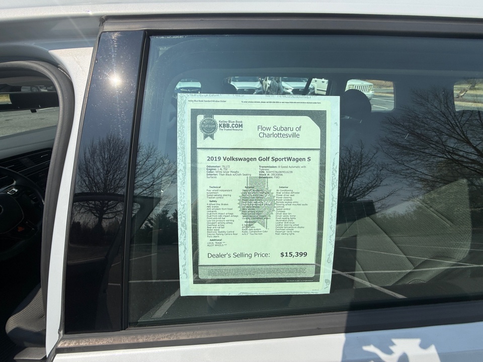 FLOW CERTIFIED! 2YR/100,000 MILE WARRANTY, 3 day money back guarantee, and a free maintenance package on this 2019 Volkswagen Golf SportWagen White Silver Metallic S! **